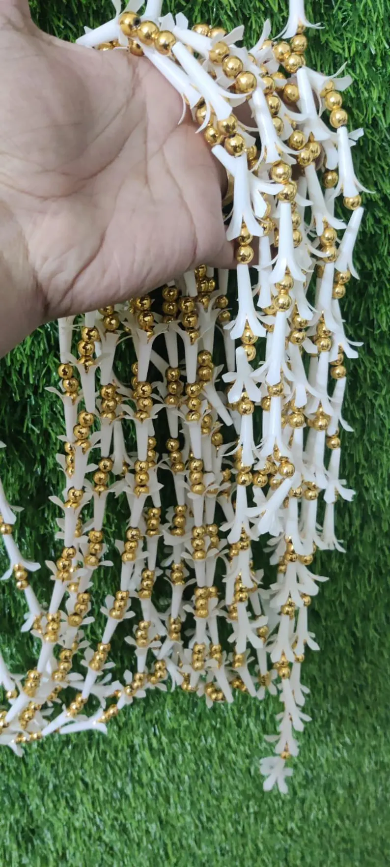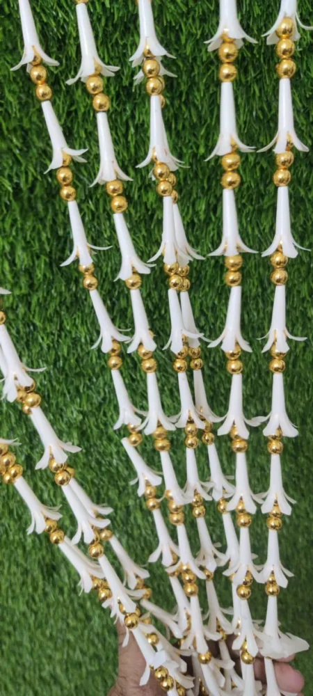 Ideal for weddings, stage decoration, mandap décor, Haldi and Mehndi ceremonies, these long garlands can be draped or hung to enhance backdrops, entrances, and photo areas. Lightweight, reusable, and realistic in appearance, they are a convenient and stylish décor choice for any festive occasion.