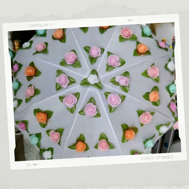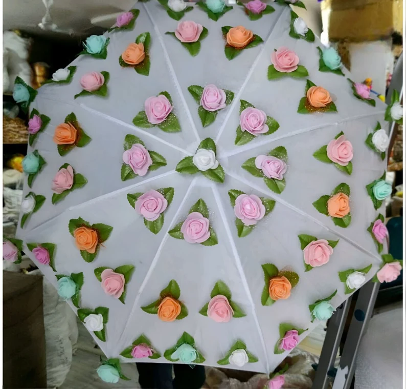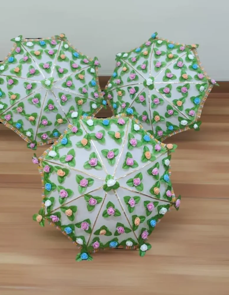 Decorative Embroidered Wedding Umbrella, designed to add elegance and cultural richness to traditional celebrations. Commonly used as a ceremonial umbrella or decorative parasol, it is perfect for Mehndi, Haldi, Sangeet, and wedding stage decoration.